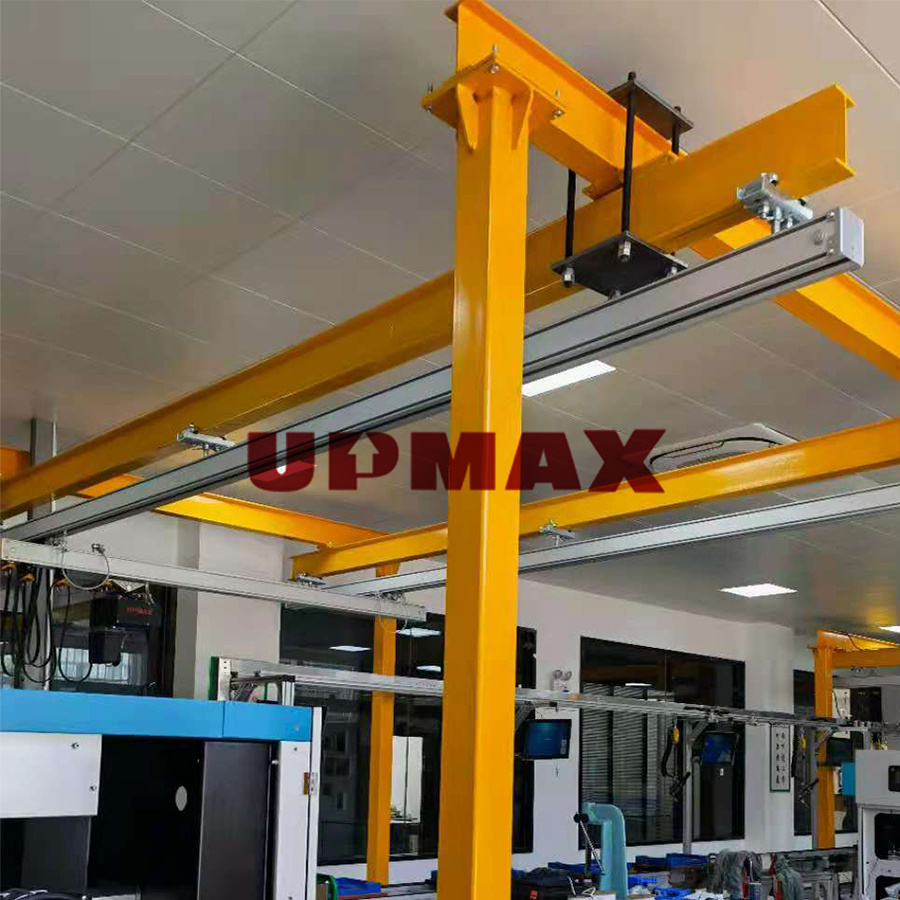 UPMAX铝合金轨道起重机,是一种应用铝合金行走轨道及滑车,用碳钢做结构支撑或配件,铝合金与碳钢组合的一种新型轻载起重设备。
